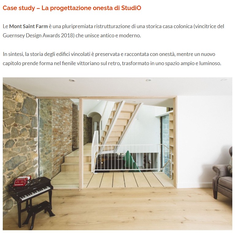 Oliver’s award-winning home Le Mont Saint Farm appears as a case study in an article entitled ‘The Allure of the Unfinished: When Architecture Lays Itself Bare’, published this month by Italian online architecture and construction magazine Infobuild.it.