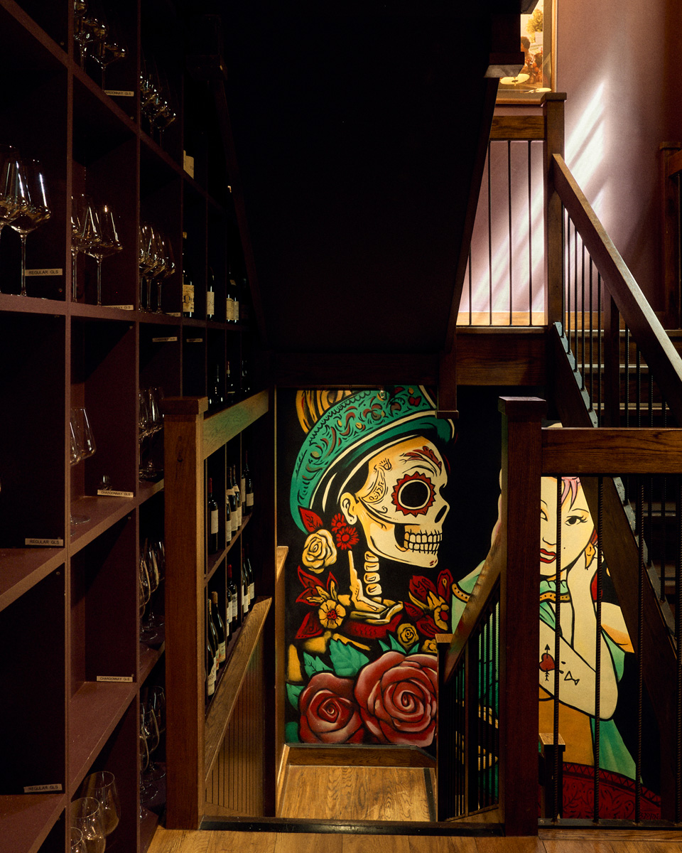 Aligning with the building’s commercial heritage, restaurateur David Matheson envisioned the dining space as a living space, with a working kitchen enhancing the theatre of the dining experience. Referring to the room’s historic commercial use, a live charcoal grill front and centre would elevate the sense of an active kitchen.