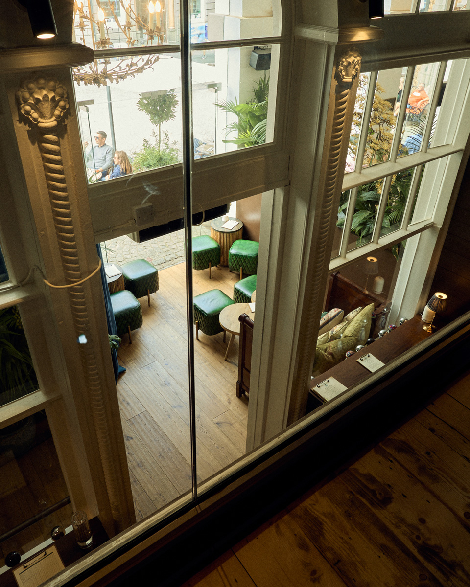 Alba comprises two such units, 6 and 7, the most notable having originally housed Thomas and Mowat’s Fruiterers and Poulterers. The walls of this unit are covered with fine, bespoke tiling, overlain by metal hanging bars for the presentation of poultry. The second unit, having been subdivided in a recent reworking, accommodates a mezzanine with discrete views of the square. The result is a series of compact, highly significant historic spaces, the repurposing of which required the utmost care.